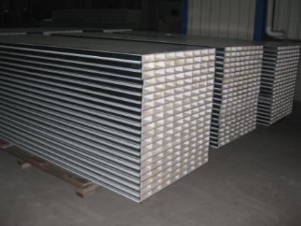 中空玻镁彩钢夹芯板以二层5mm防火玻镁板、中间加防火玻镁内隔条为芯材,经彩钢夹芯板多功能连续生产线复合成型,中空玻镁彩钢夹芯板其特点板材为防火不燃材料组成,有效提高了彩钢夹芯板的防火性能,又能满足在有防潮湿环境条件下使用;其芯材为中空板材,用于车间隔墙在电气施工铺设暗线时较为方便,该产品投入生产后被广泛使用于净化车间无尘室的吊顶及隔墙