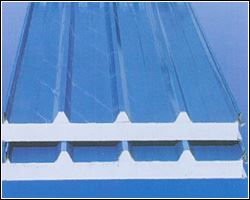 集瓦楞板及夹芯板于一体,比普通平面彩钢夹芯板强度增加了三倍;采用隐藏式自钻螺钉与屋架连接,不破坏彩涂板的外露部分,延长了彩钢夹芯板的寿命;板与板联接采用扣帽式,便于施工,提高工效,最大特点水易渗水。